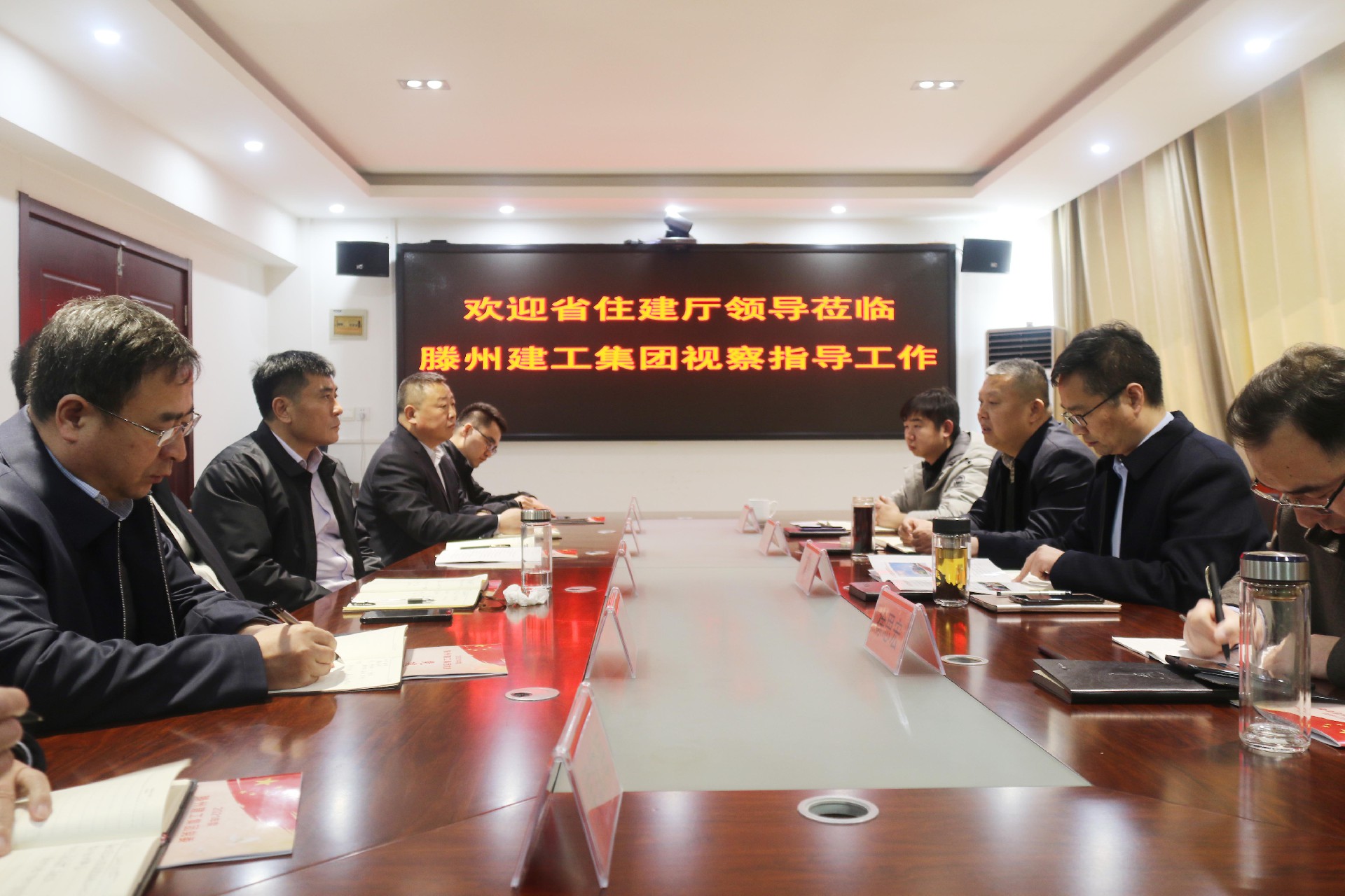 2月25日,省住建廳建筑市場(chǎng)建管處二級(jí)調(diào)研員王長(zhǎng)征一行蒞臨集團(tuán)視察指導(dǎo)工作,棗莊市住建局黨組成員、副局長(zhǎng)丁善意,滕州市建筑業(yè)發(fā)展服務(wù)中心主任施治國(guó)等領(lǐng)導(dǎo)陪同視察。